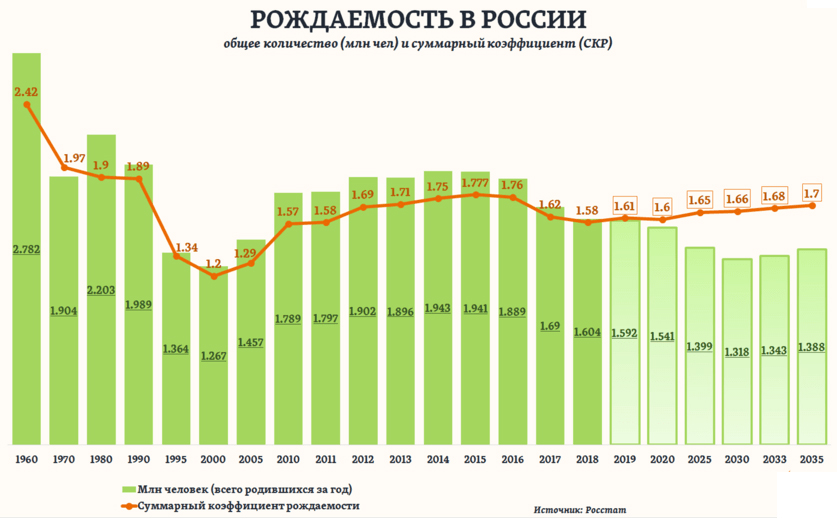 Легко в грош не ставить авторитеты родителей, учителей и государства, но ещё легче подпасть под влияние пустоголовых, но ярких и болтливых блогеров. Модные блогеры не расскажут, что к 2035 году ежегодная убыль россиян должна составить полмиллиона человек в год. Именно таков официальный прогноз Росстата, по которому Правительство России планирует социально-экономическое развитие.